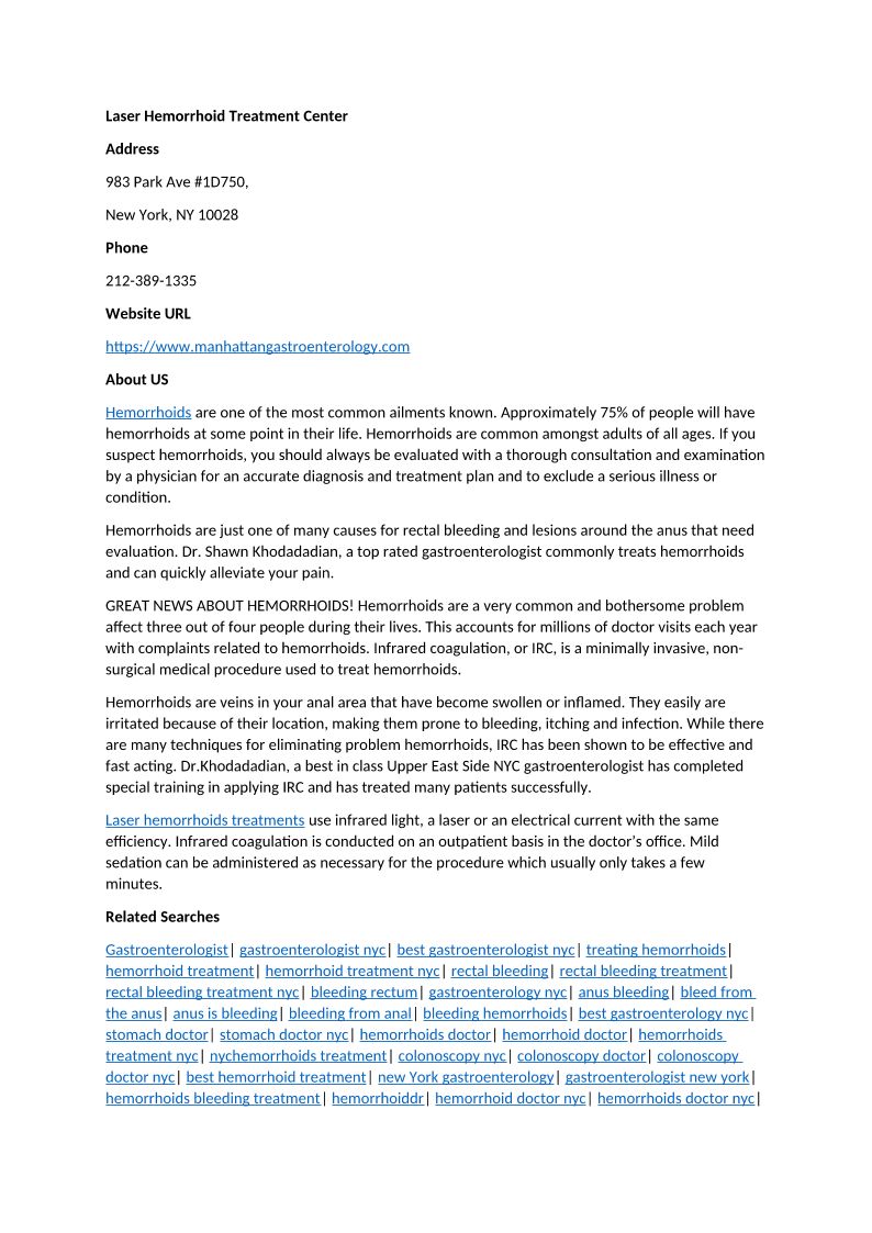 Laser Hemorrhoid Treatment Center - 983 Park Ave #1D750, New York, NY 10028