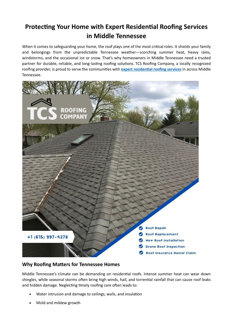 Residential Roofing Services provider in Middle Tennessee - TCS Roofing Company