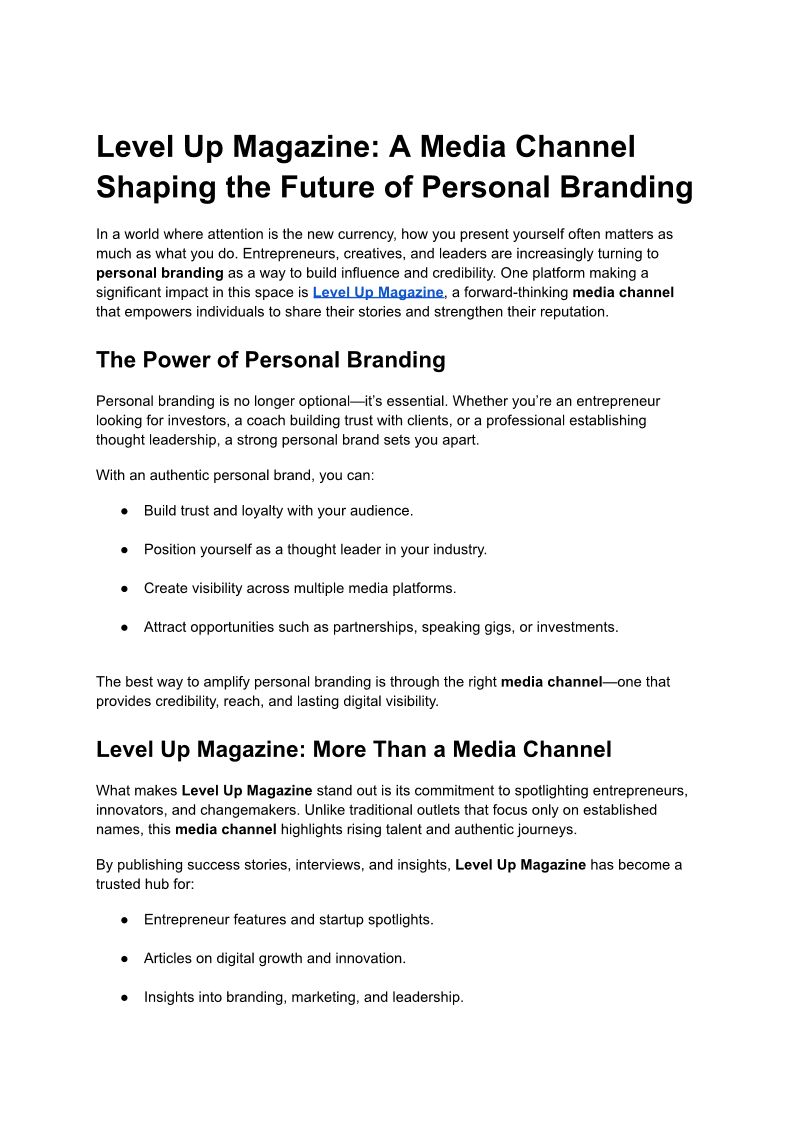 Level Up Magazine_ A Media Channel Shaping the Future of Personal Branding