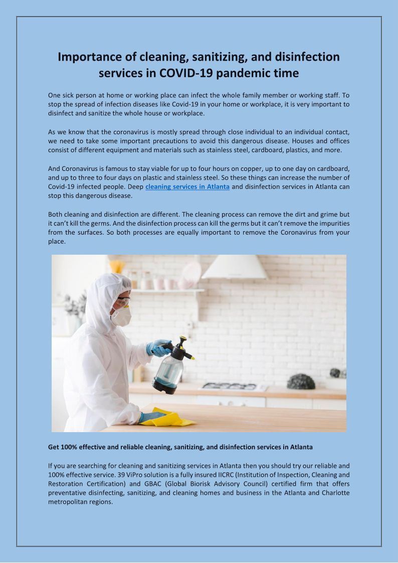 Importance of cleaning, sanitizing, and disinfection services in COVID-19 pandemic time