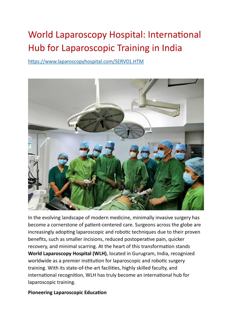 World Laparoscopy Hospital International Hub for Laparoscopic Training in India