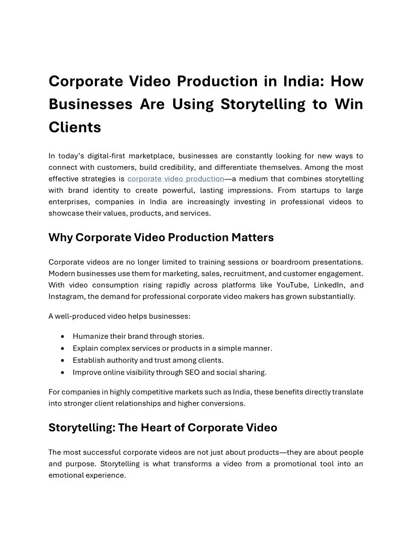Corporate Video Production in India – Storytelling Strategies for Business Growth 2025