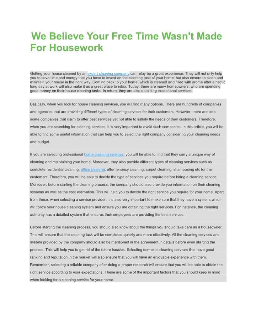 We Believe Your Free Time Wasn't Made For Housework