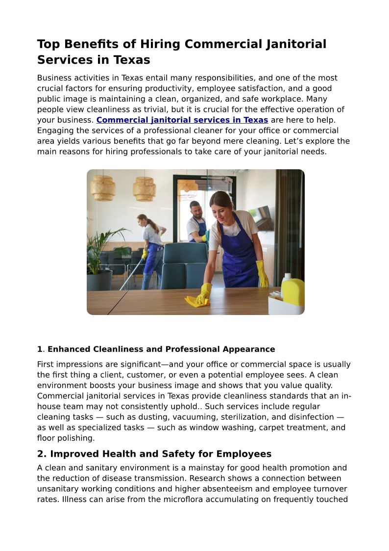 Top Benefits of Hiring Commercial Janitorial Services in Texas