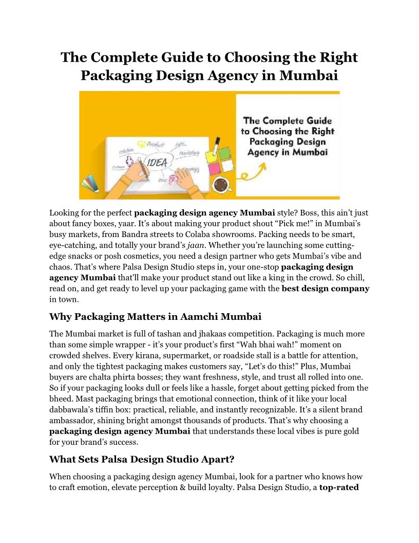 The Complete Guide to Choosing the Right Packaging Design Agency in Mumbai