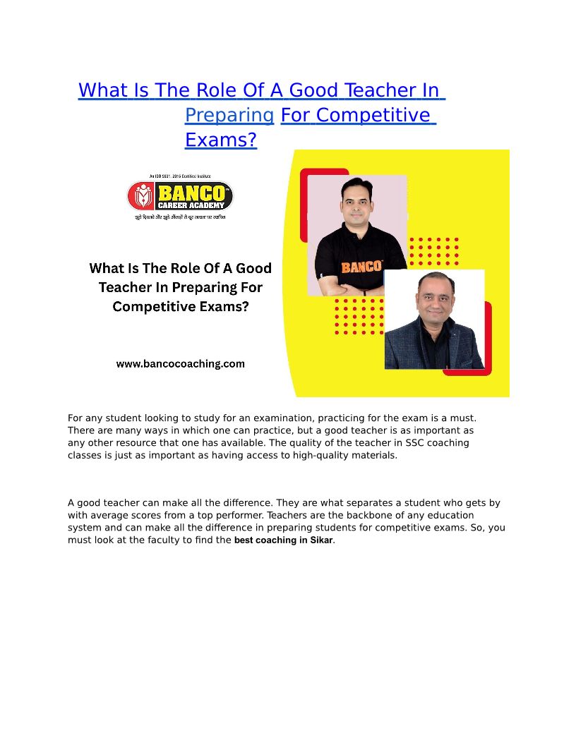 What Is The Role Of A Good Teacher In Preparing For Competitive Exams