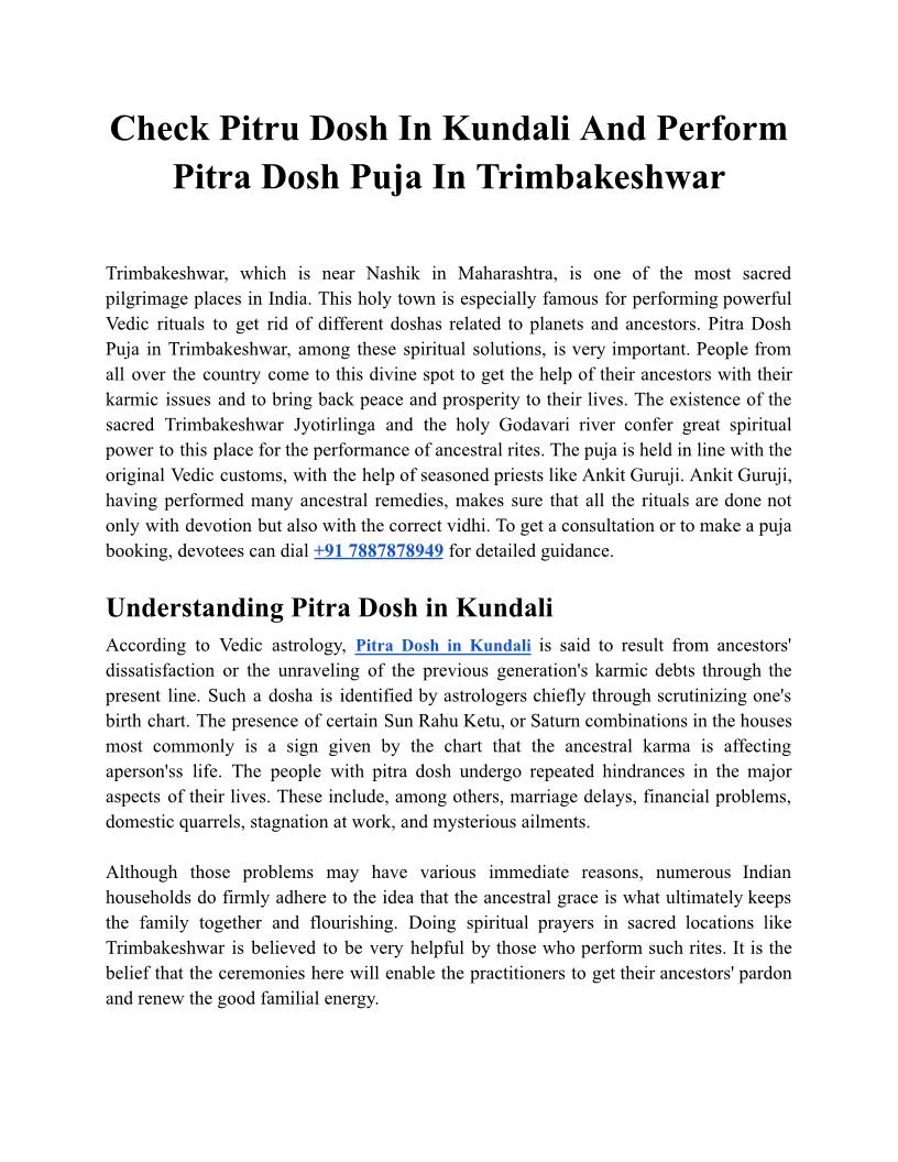 Check Pitru Dosh In Kundali And Perform Pitra Dosh Puja In Trimbakeshwar