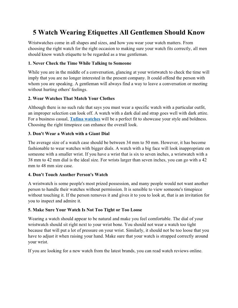 5 Watch Wearing Etiquettes All Gentlemen Should Know