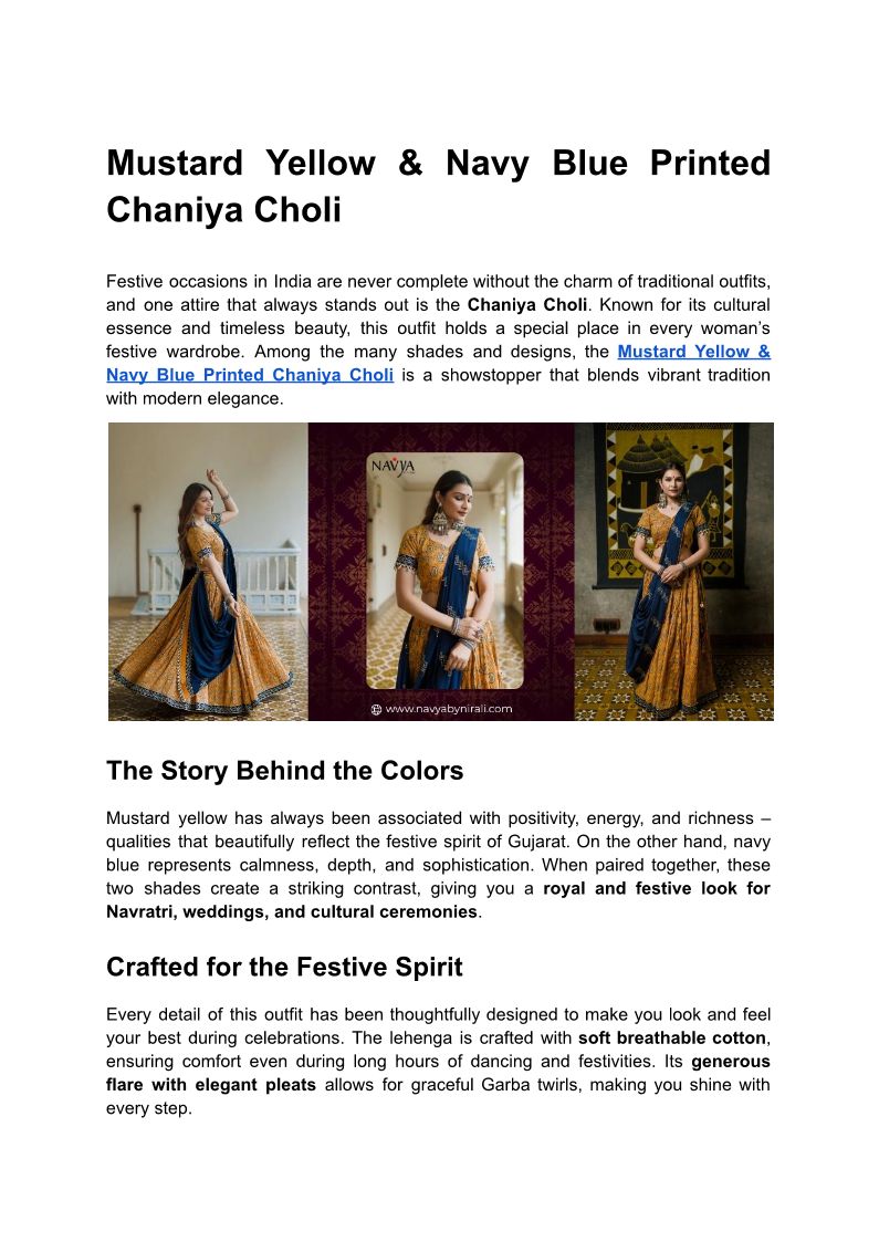 Mustard Yellow & Navy Blue Printed Chaniya Choli