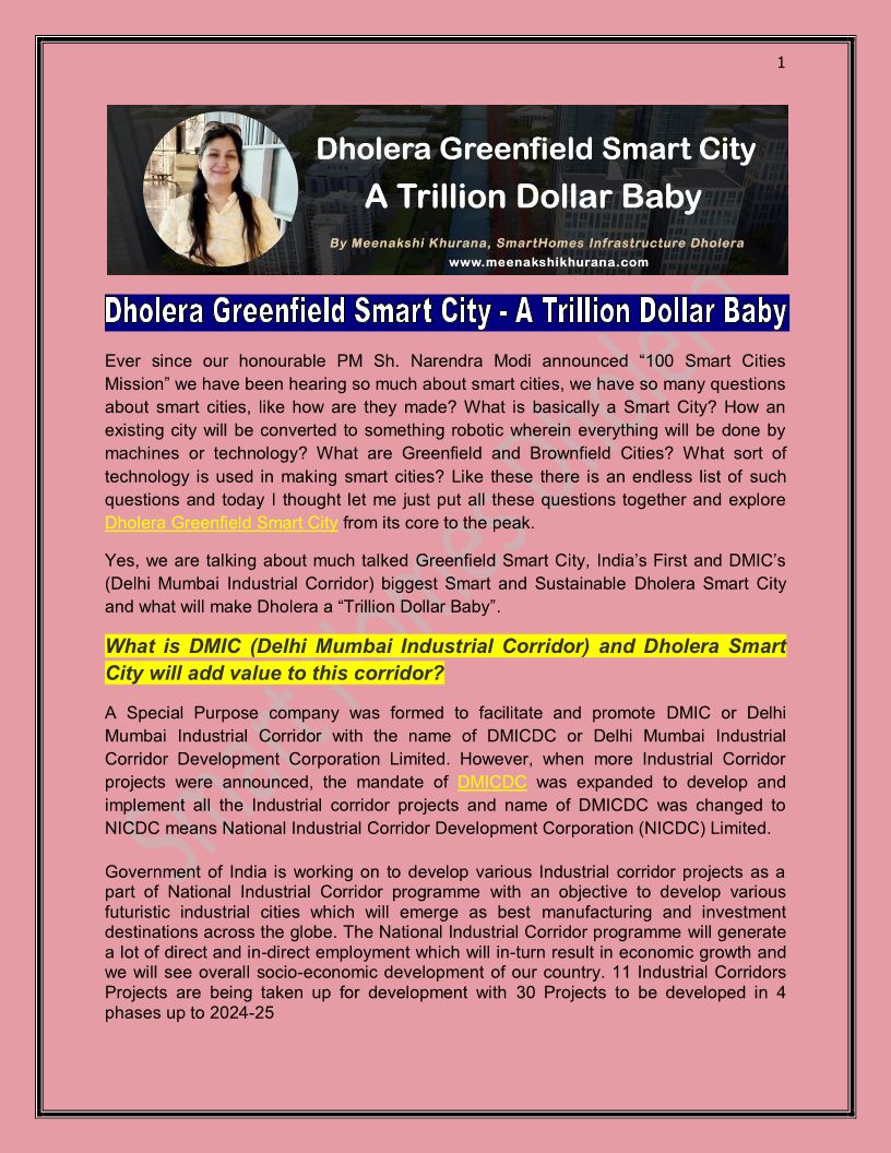 Dholera Greenfield Smart City - A Trillion Dollar Baby by Meenakshi Khurana