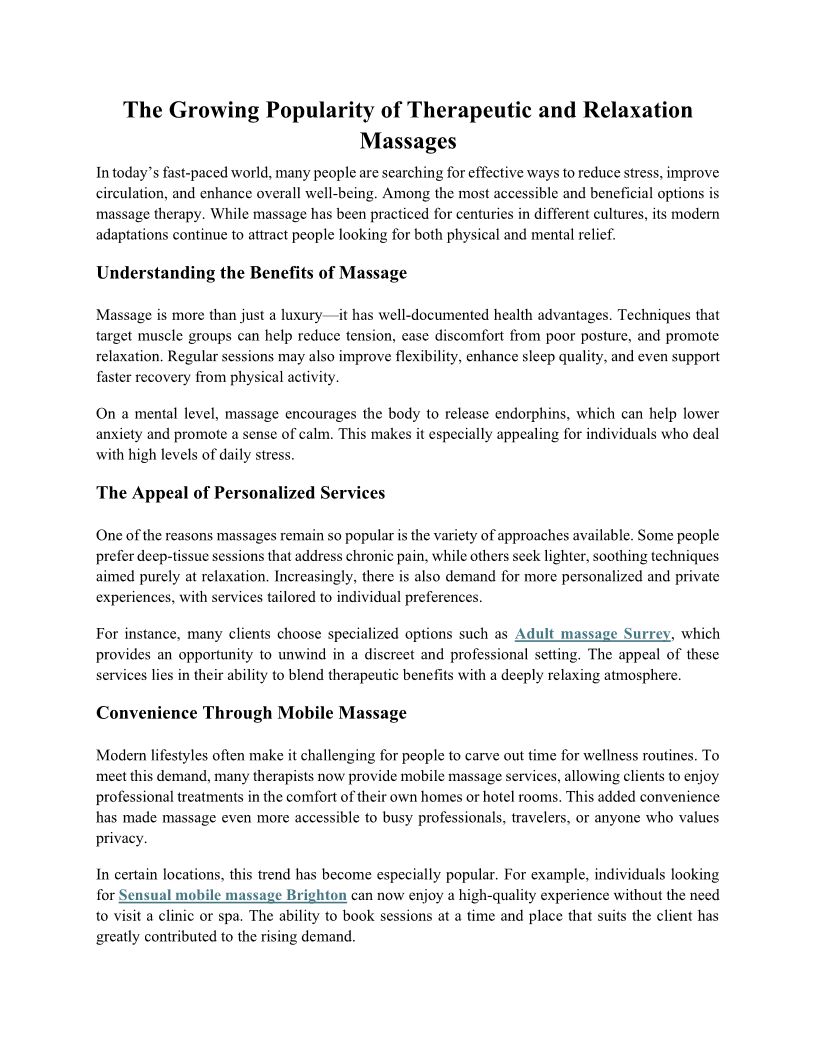 The Growing Popularity of Therapeutic and Relaxation Massages