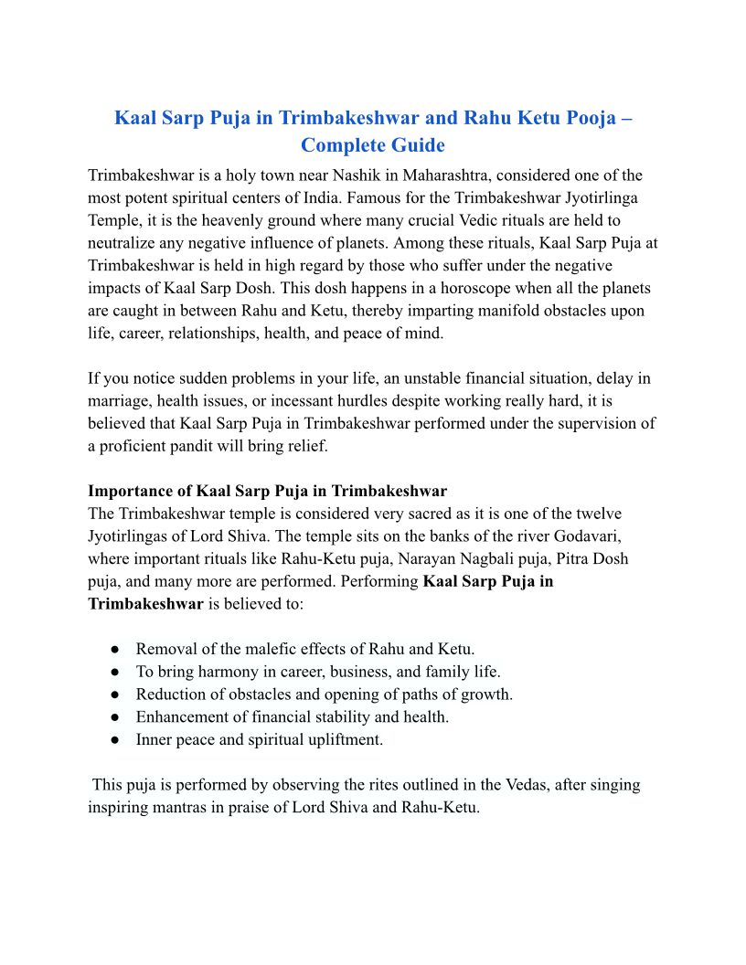 Kaal Sarp Puja in Trimbakeshwar and Rahu Ketu Pooja – Complete Guide