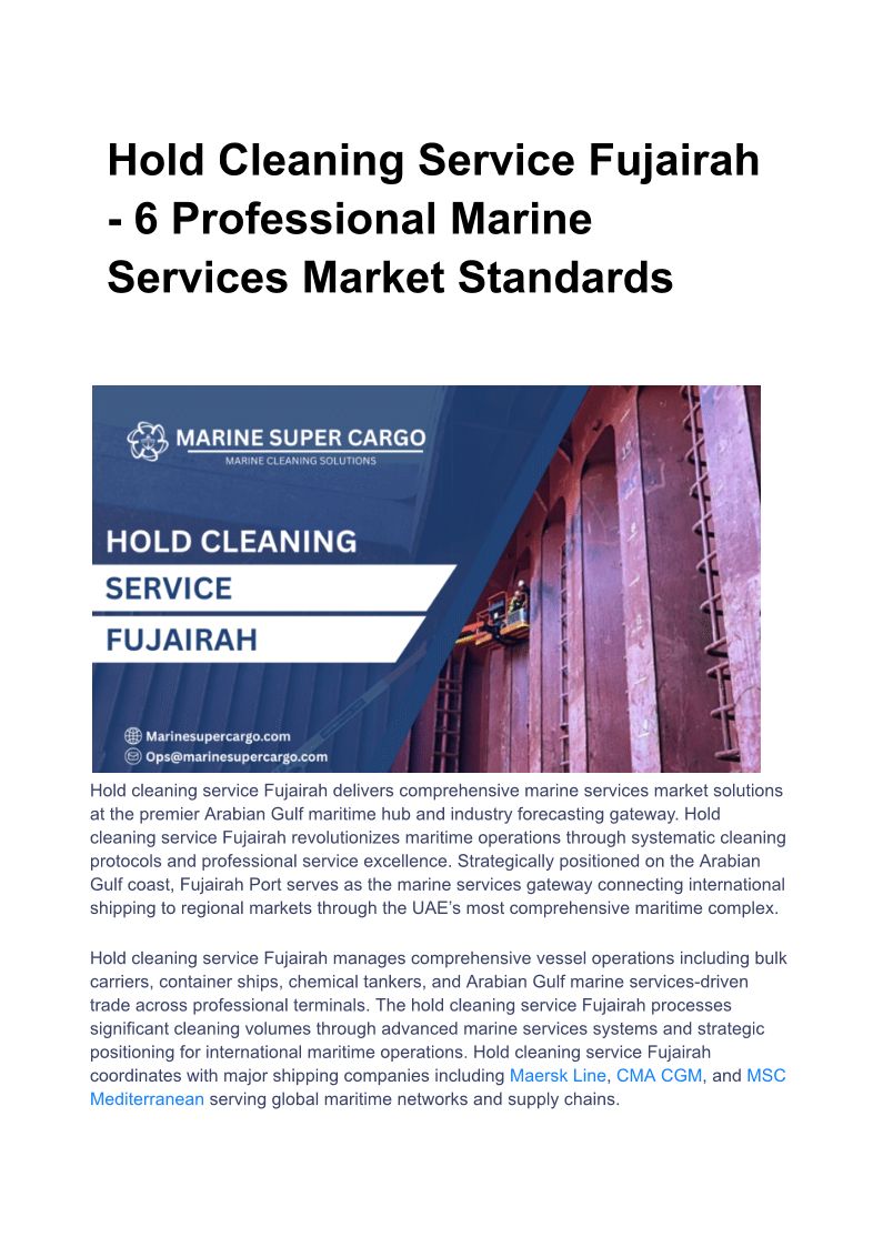 Hold Cleaning Service Fujairah - 6 Professional Marine Services Market Standards