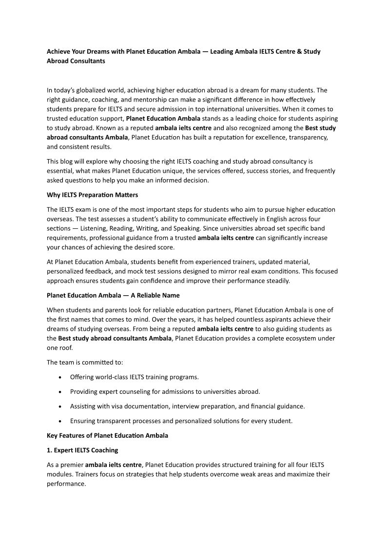 Achieve Your Dreams with Planet Education Ambala — Leading Ambala IELTS Centre & Study Abroad Consultants