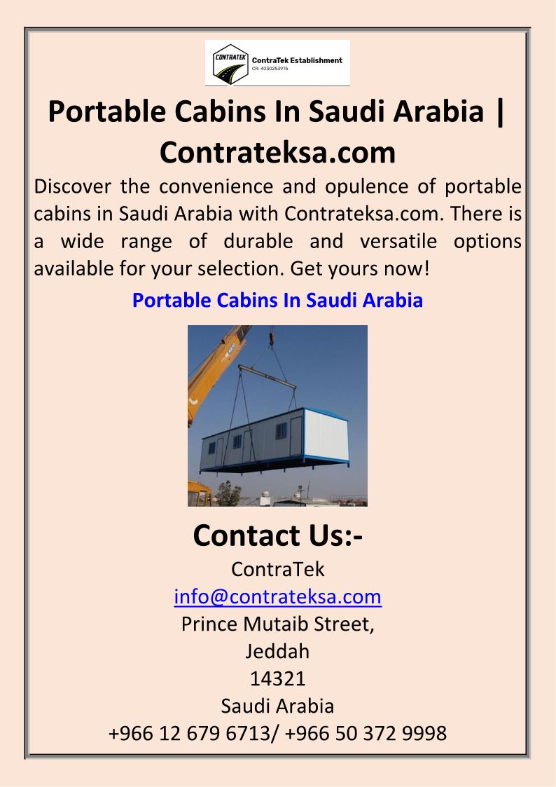 Portable Cabins In Saudi Arabia | Contrateksa.com
