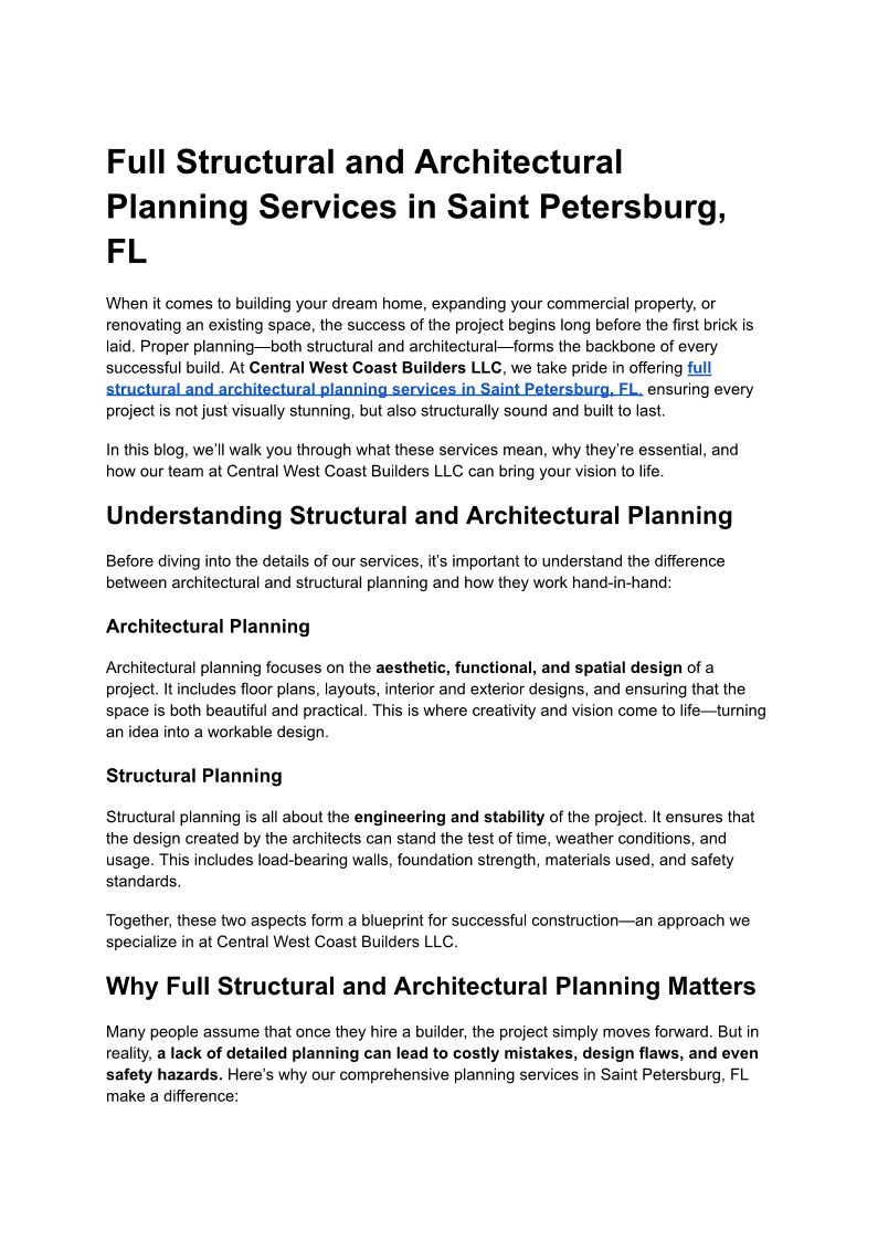 Full Structural and Architectural Planning Services in Saint Petersburg, FL | Central West Coast Builders LLC
