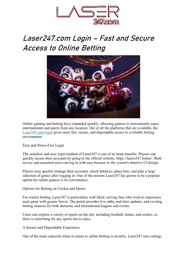 Laser247.com Login – Quick and Secure Access to Online Betting