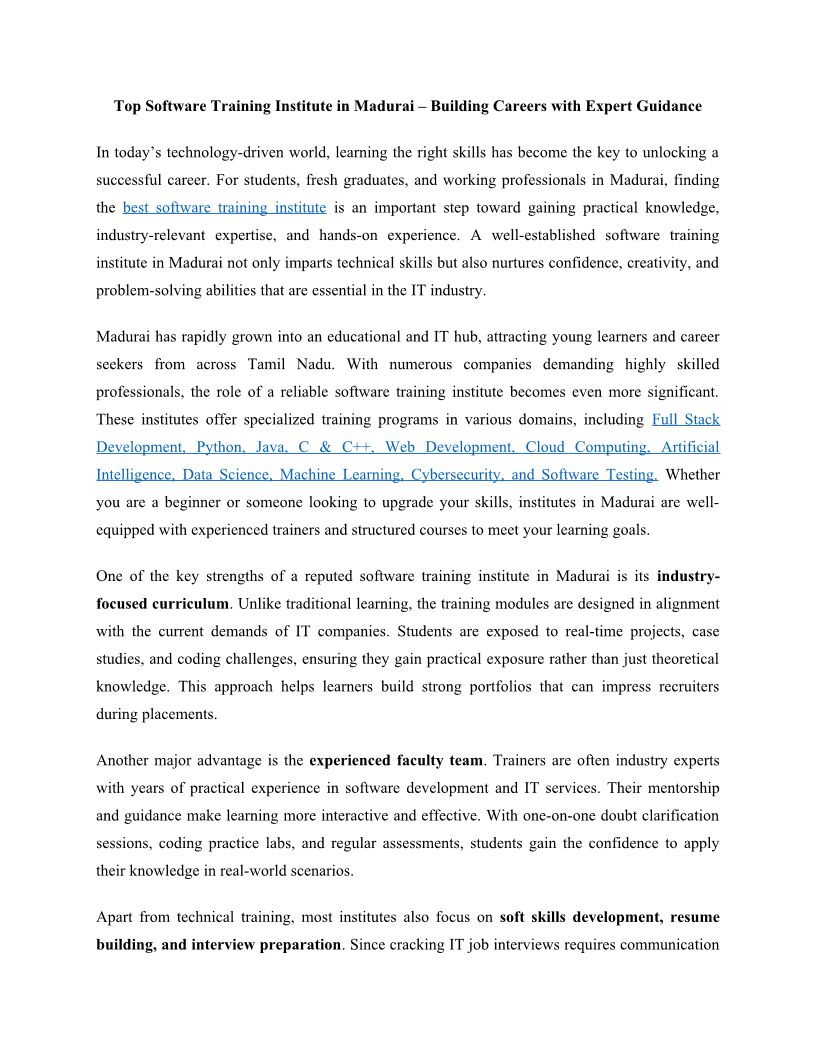 Top Software Training Institute in Madurai – Building Careers with Expert Guidance