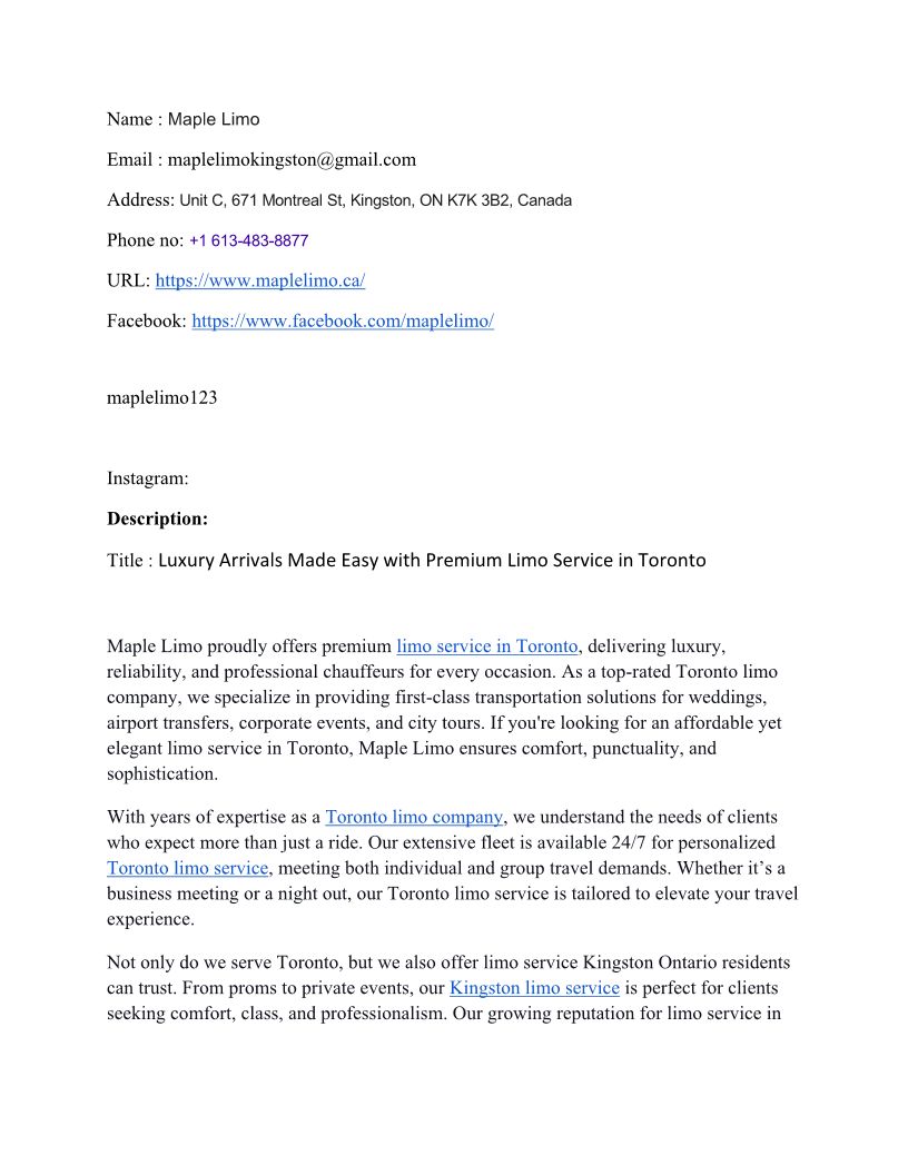 Maple limo bLuxury Arrivals Made Easy with Premium Limo Service in Torontoacklink document