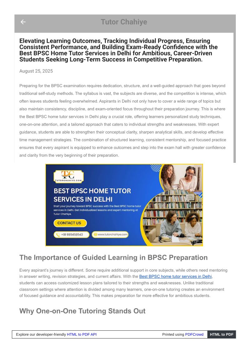 Master Success with the Best BPSC home tutor services in Delhi