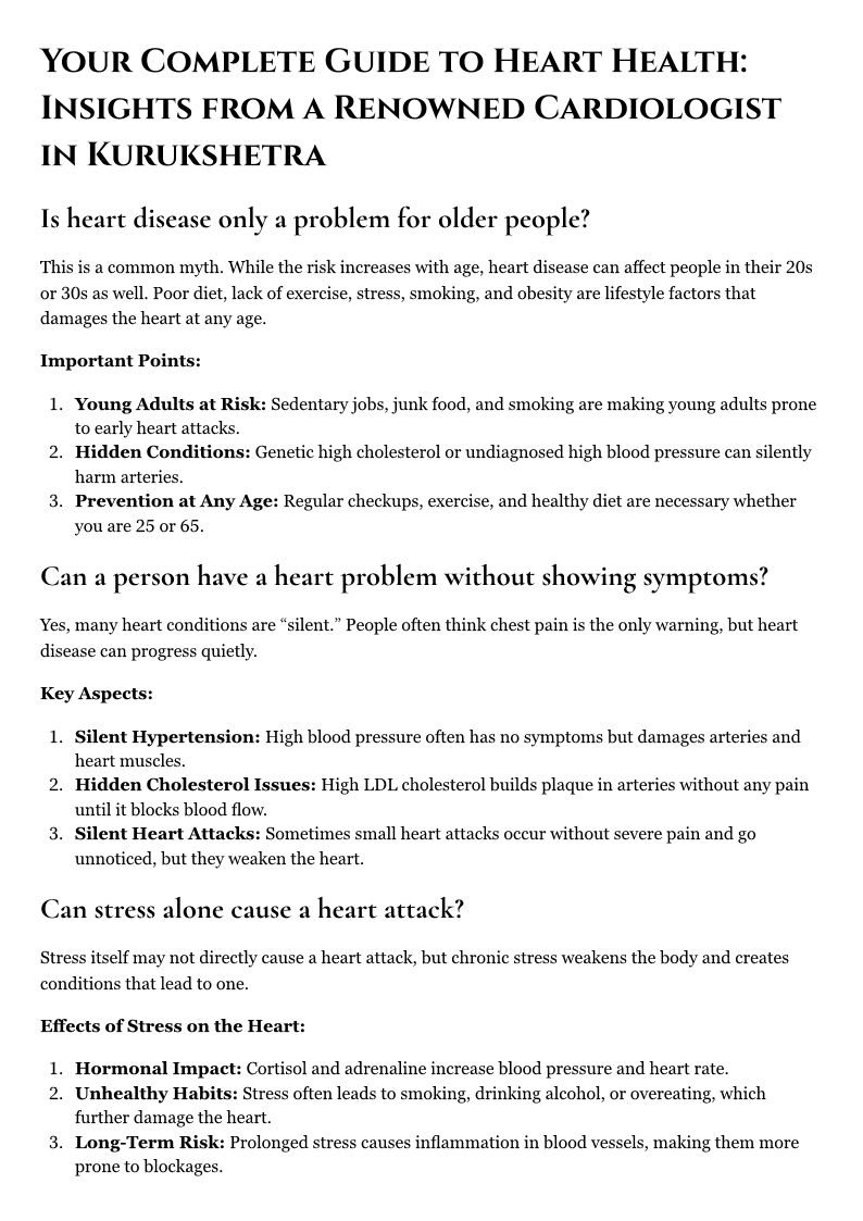 Your Complete Guide to Heart Health Insights from a Renowned Cardiologist in Kurukshetra