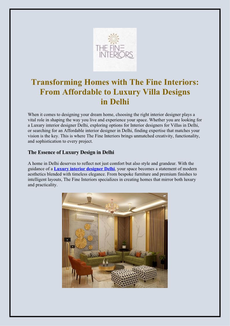 Transforming Homes with The Fine Interiors: From Affordable to Luxury Villa Designs in Delhi