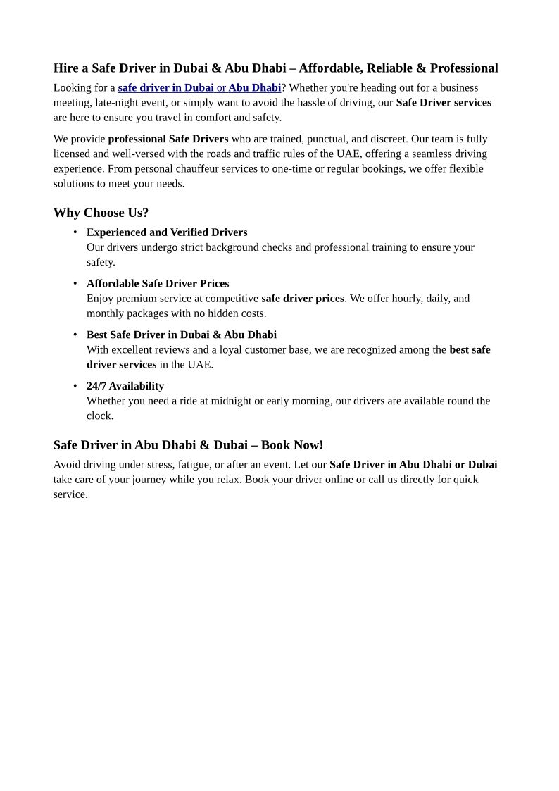 Hire a Safe Driver in Dubai & Abu Dhabi – Affordable, Reliable & Professional