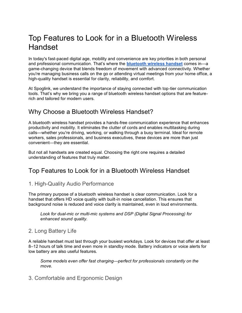 Top Features to Look for in a Bluetooth Wireless Handse1