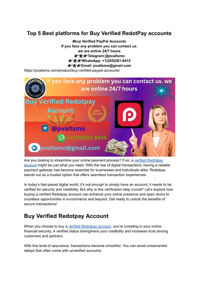 Top 5 Best platforms for Buy Verified RedotPay accounts