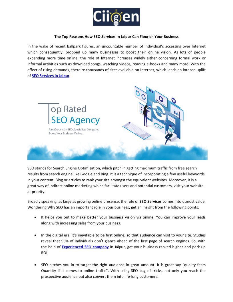 The Top Reasons How SEO Services In Jaipur Can Flourish Your Business