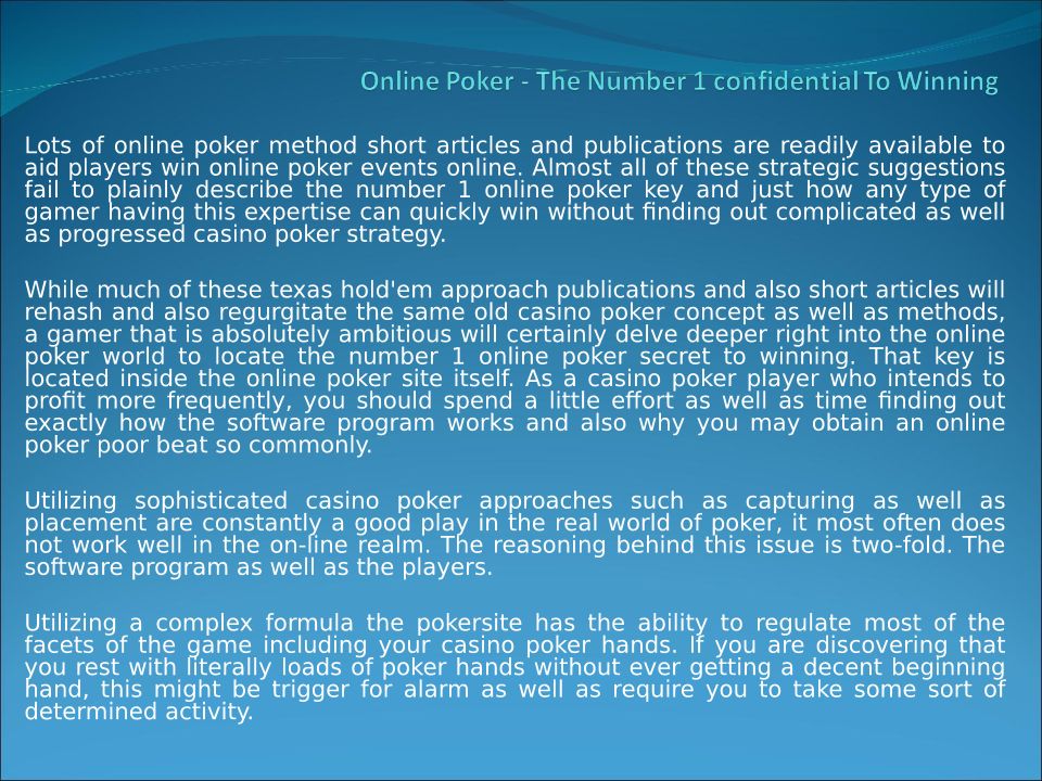 Online Poker - The Number 1 confidential To