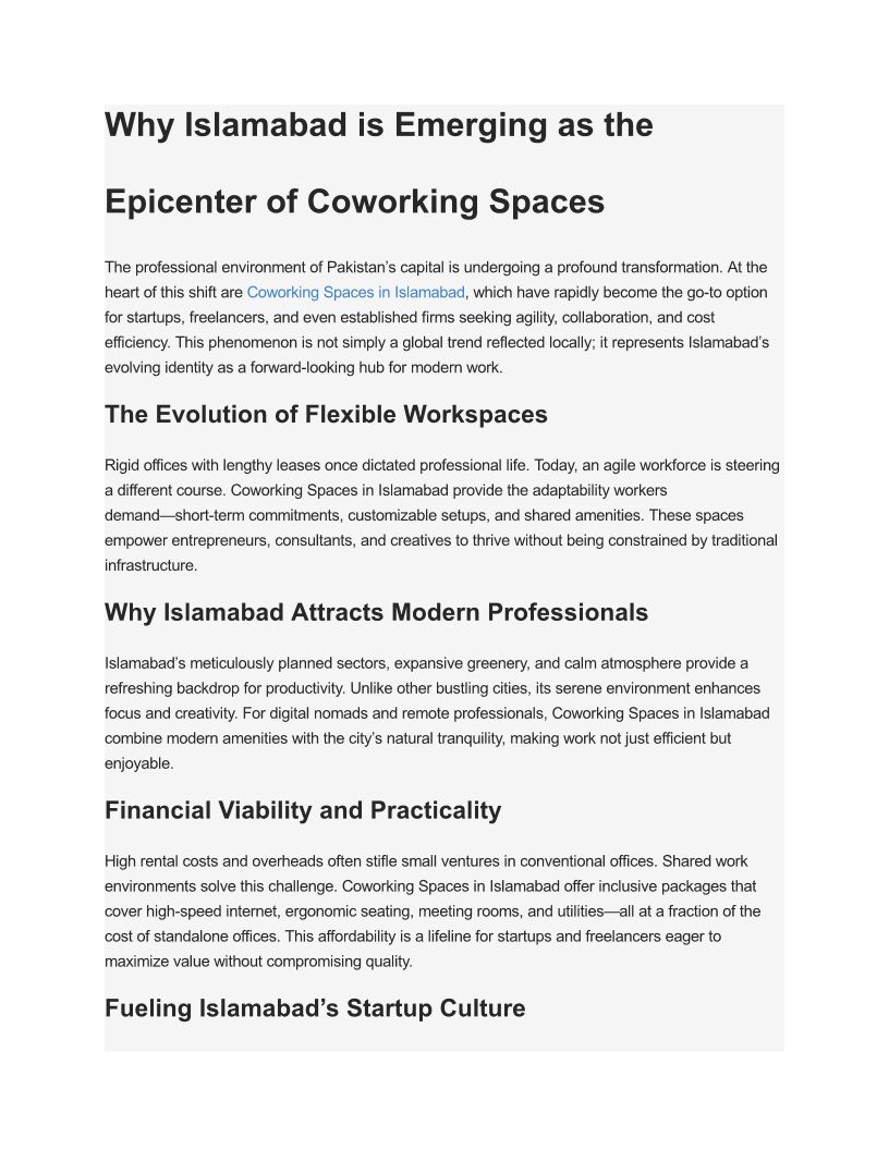 Why Islamabad is Emerging as the Epicenter of Coworking Spaces