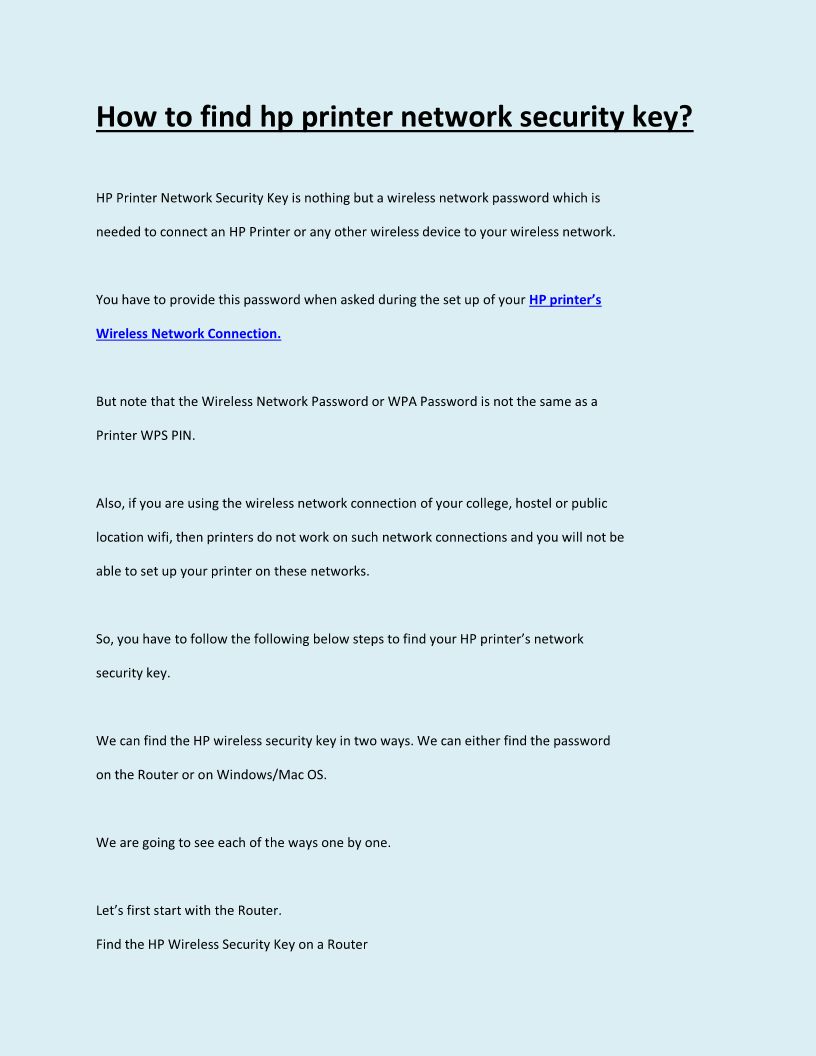 How to find hp printer network security key