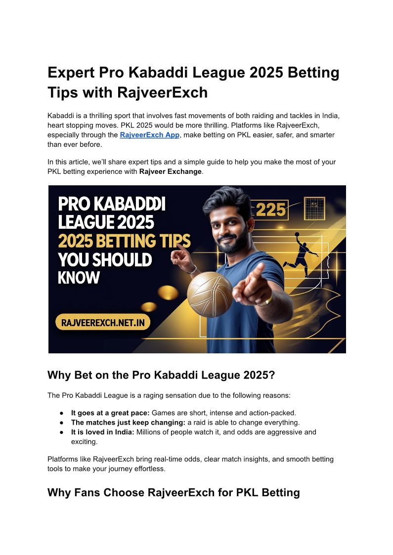 Expert Pro Kabaddi League 2025 Betting Tips with RajveerExch