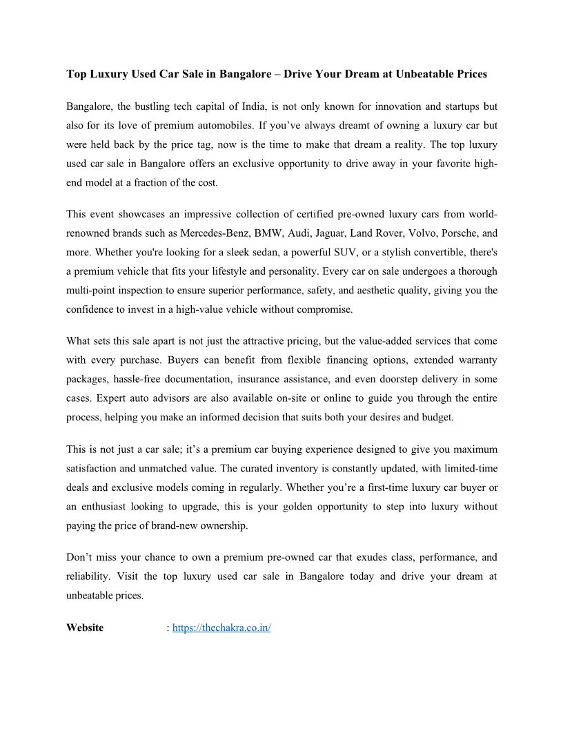 Top Luxury Used Car Sale in Bangalore – Drive Your Dream at Unbeatable Prices