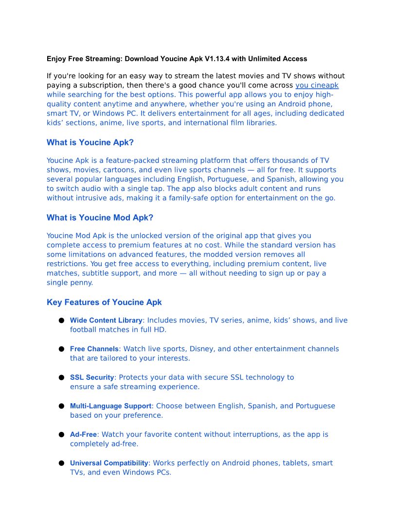 Enjoy Free Streaming -- Download Youcine Apk