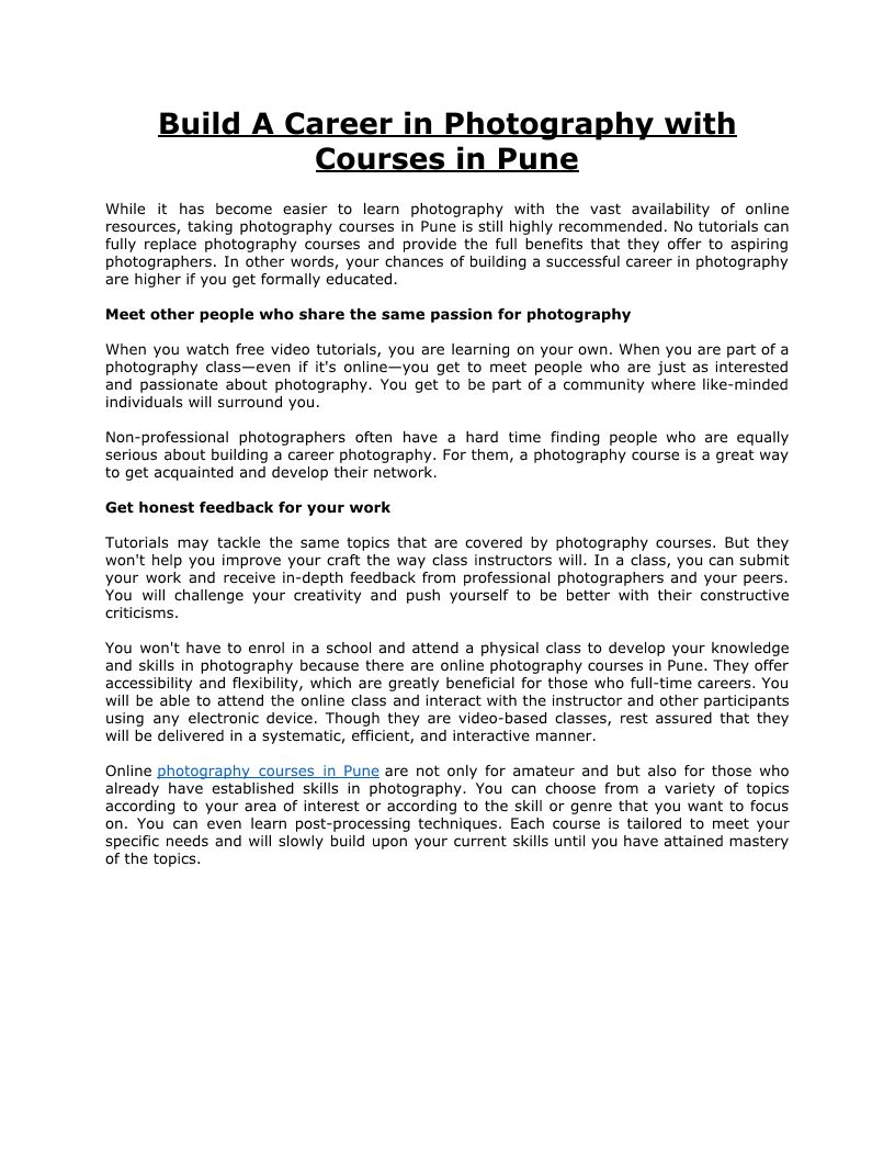 Build A Career in Photography with Courses in Pune