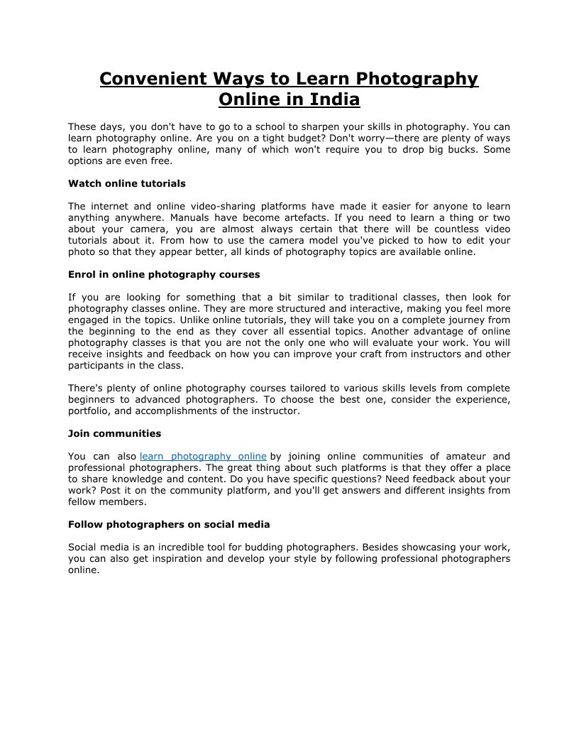 Convenient Ways to Learn Photography Online in India