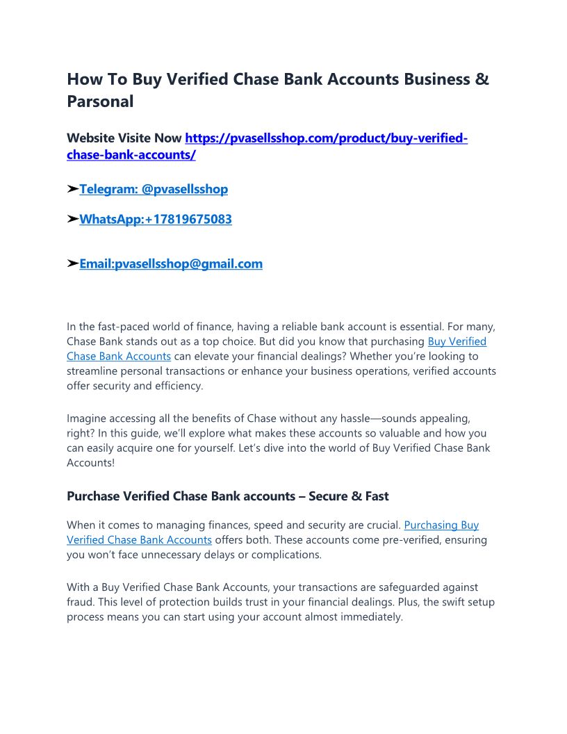 How To Buy Verified Chase Bank Accounts Business