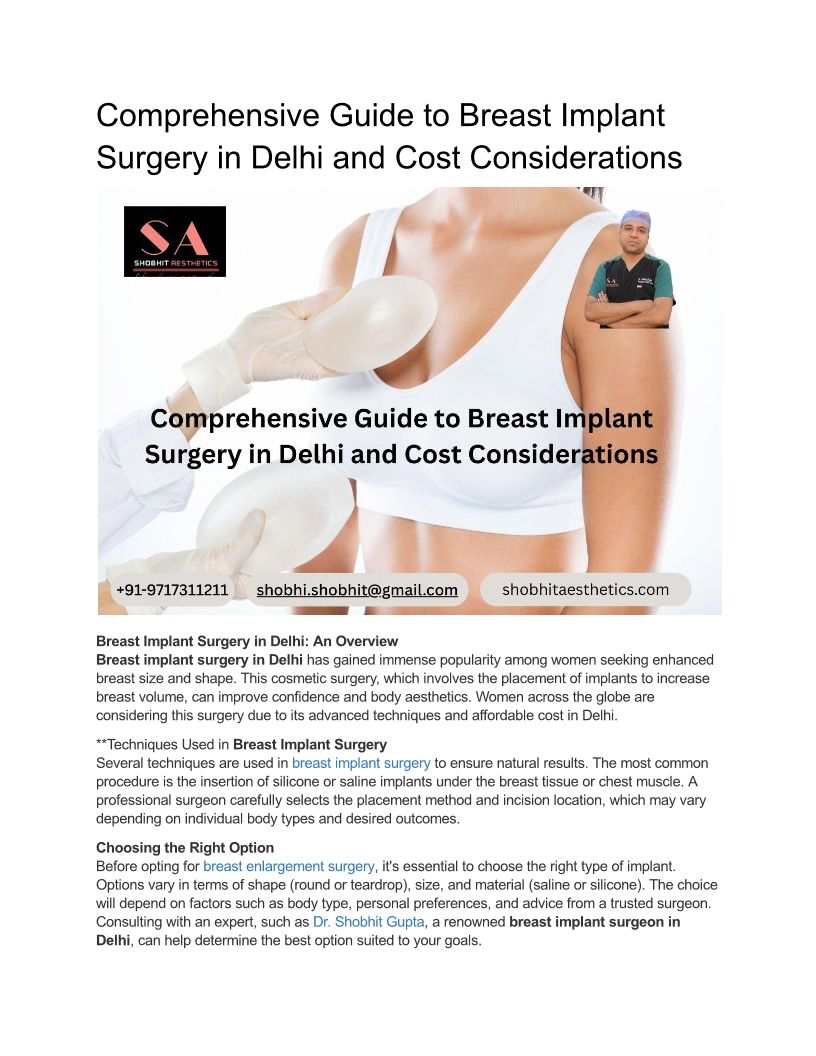 Comprehensive Guide to Breast Implant Surgery in Delhi and Cost Considerations