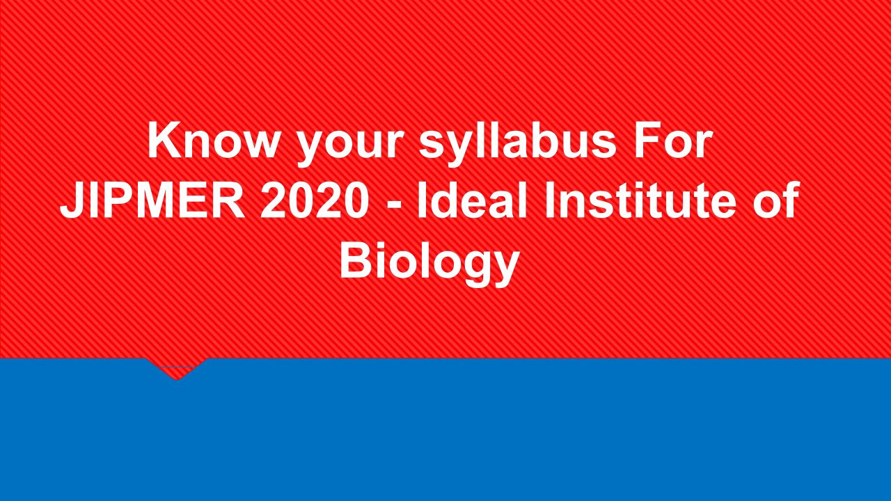 Know your syllabus For JIPMER 2020 - Ideal Institute of Biology