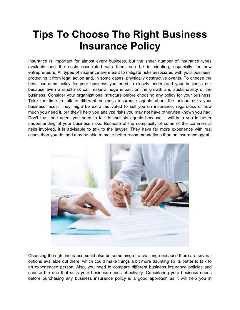 Tips To Choose The Right Business Insurance Policy