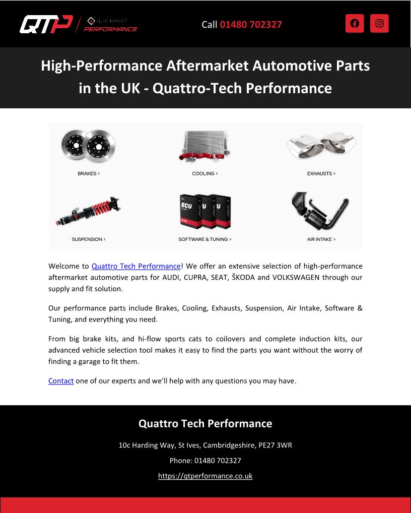 High-Performance Aftermarket Automotive Parts in the UK - Quattro-Tech Performance