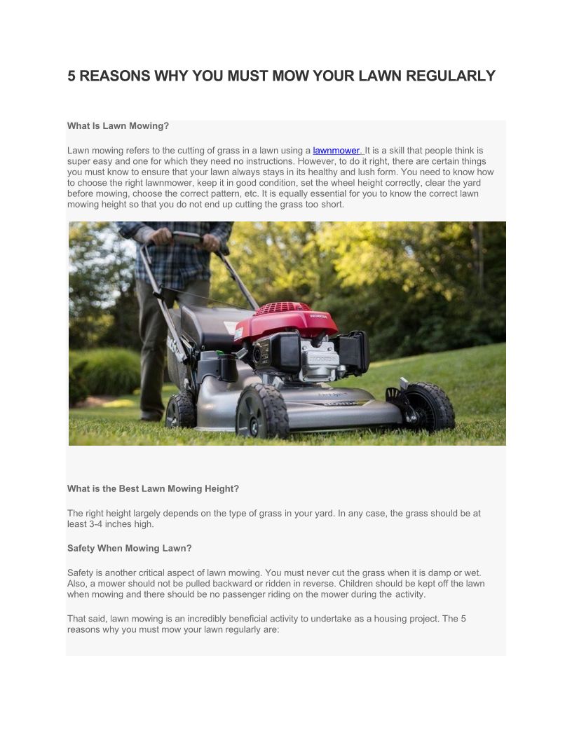 5 REASONS WHY YOU MUST MOW YOUR LAWN REGULARLY