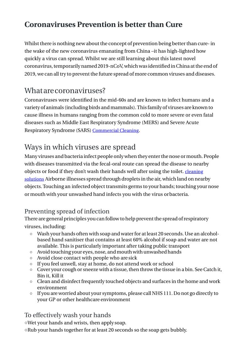 Coronaviruses Prevention is better than Cure