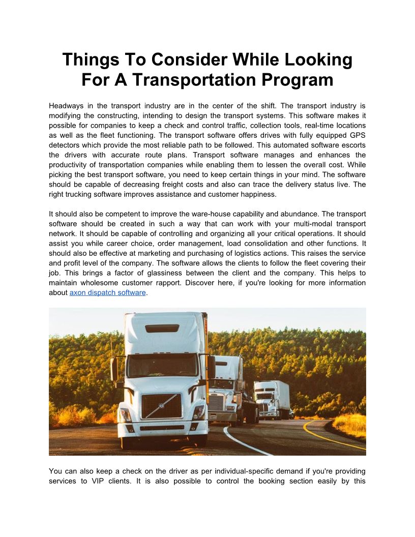Things To Consider While Looking For A Transportation Program