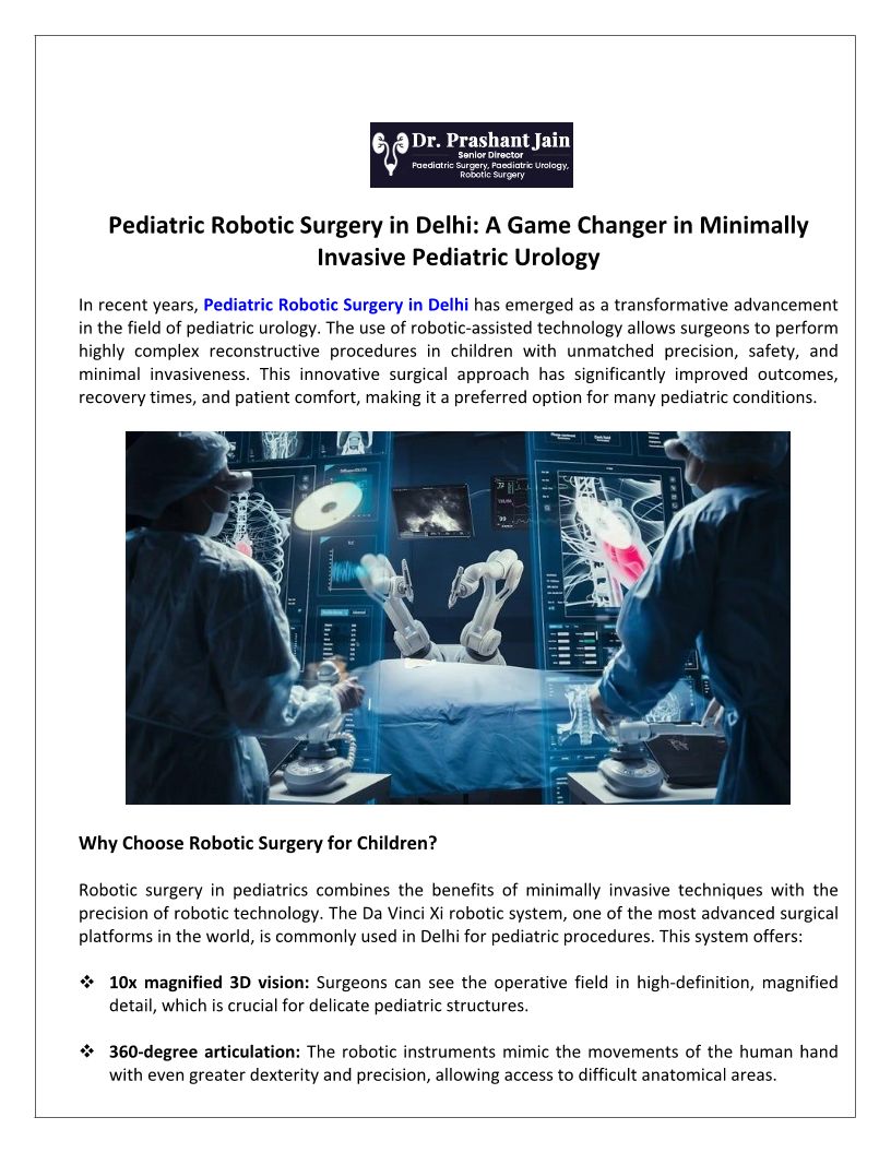 Pediatric Robotic Surgery in Delhi: A Game Changer in Minimally Invasive Pediatric Urology