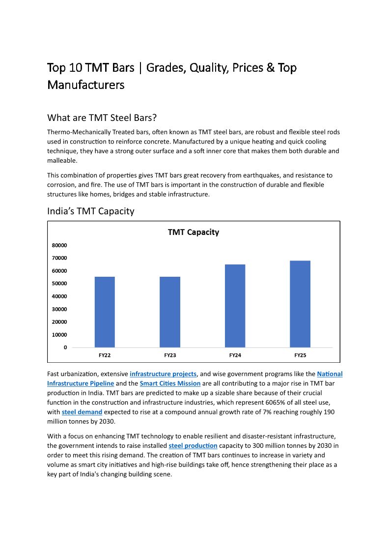 Top 10 TMT Bars Grades, Quality, Prices & Top Manufacturers