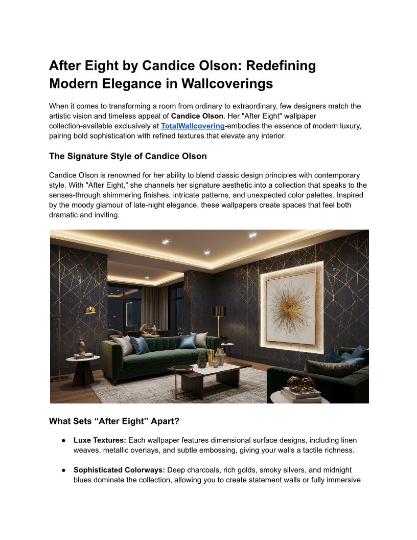 After Eight by Candice Olson- Redefining Modern Elegance in Wallcoverings