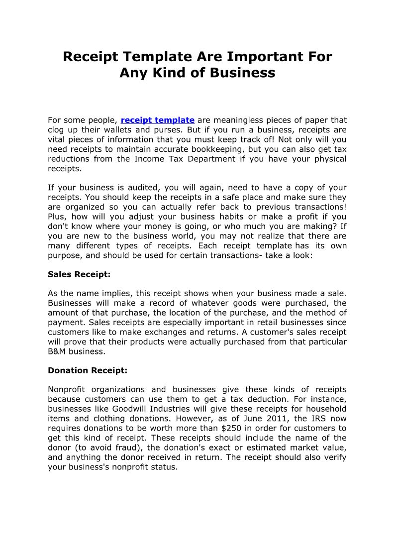 Receipt Template Are Important For Any Kind of Business